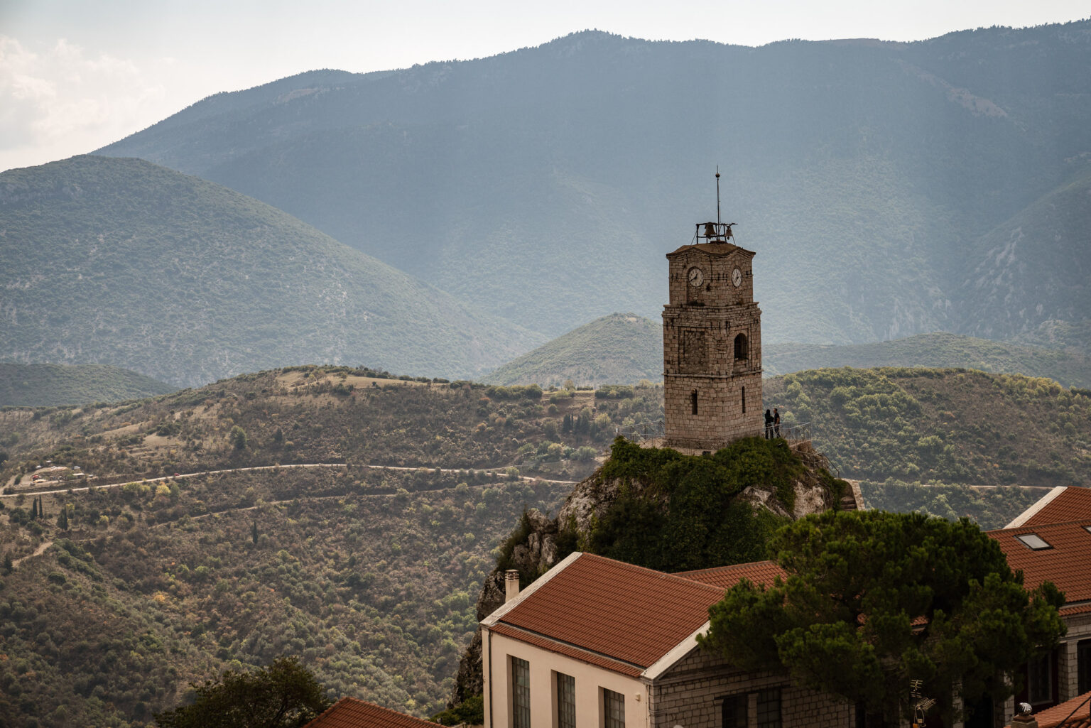 The Arachova clock tower is an imposing feature along the town’s winding main road, a stretch offering a view of the magical Delphi valley on one side, and lined, on the other side, with stylish restaurants and bars.